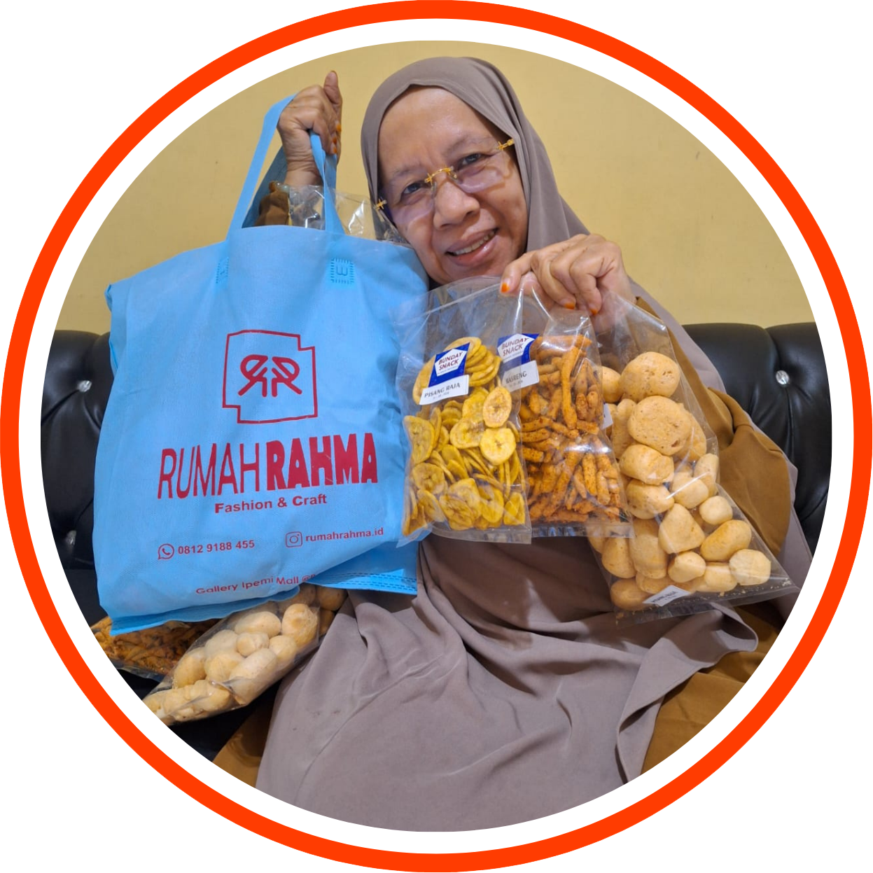 Clothes, handycraft, batik bag, snacks and rotan bag